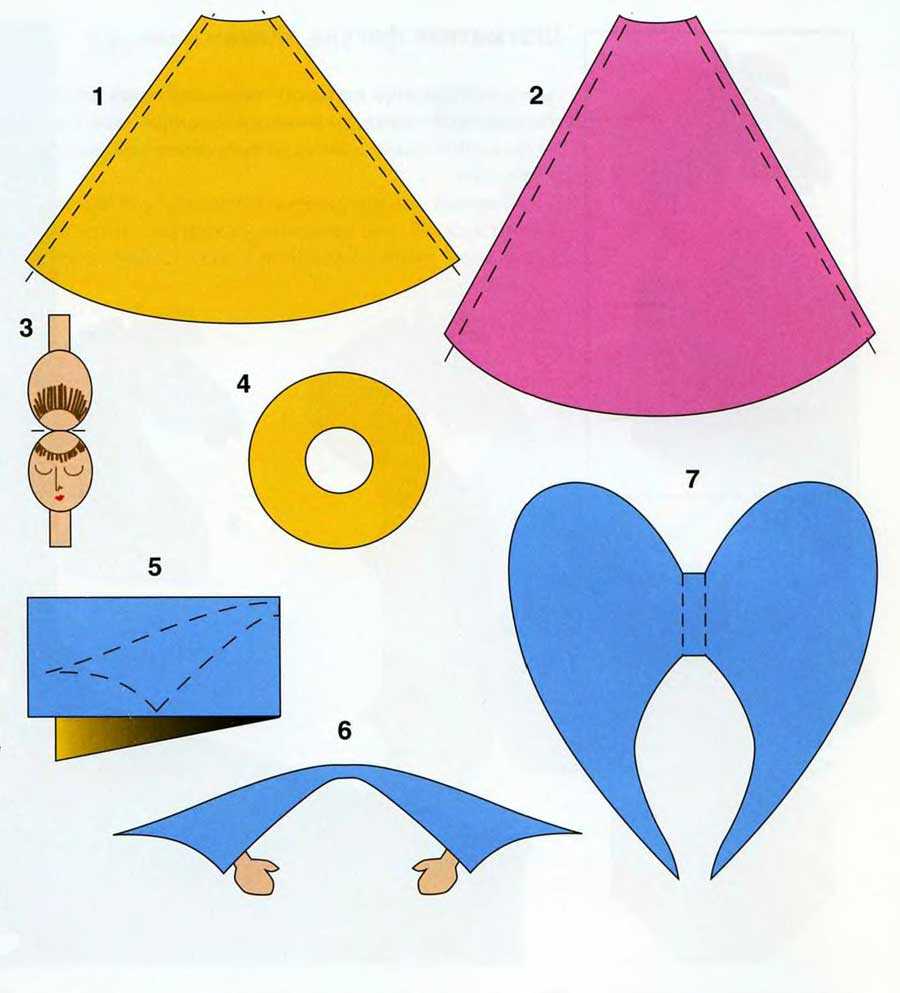 - Например, при создании этой игрушки достаточно только перенести изображение на бумагу, вырезать и согнуть нижнюю часть листа в конус. Точками указано место для создания перфорации (для этой мелкой работы потребуется иголка или шило). Этот элемент придаст дополнительный шарм персонажу.