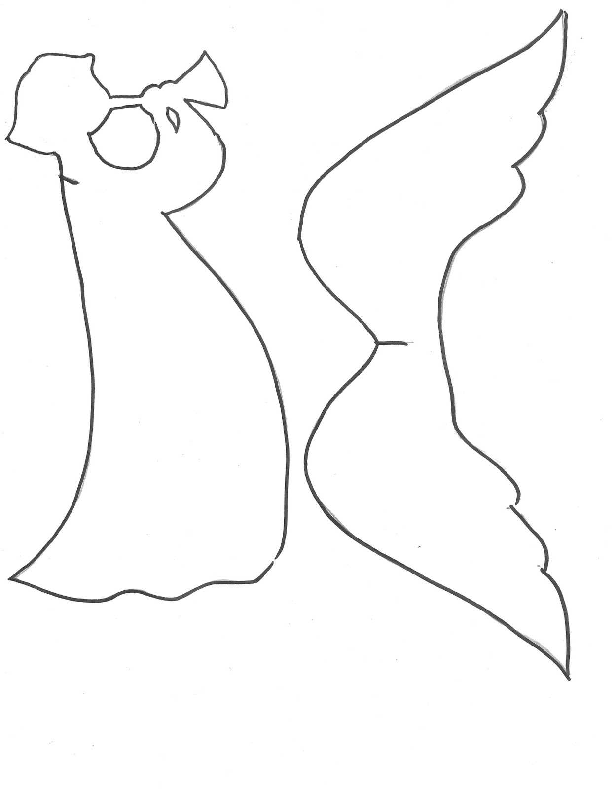Трафарет легко выбрать из книжек или интернета, распечатать подходящего размера. На листе А-4 помещается вся фигурка Ангелочка.