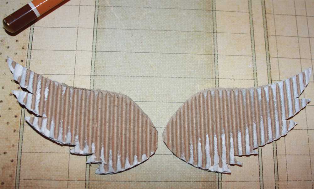 Еще один вариант крыльев для ангела можно изготовить, использовав в качестве основы заготовку из картона, на которую сверху наклеиваются заранее вырезанные бумажные перья.