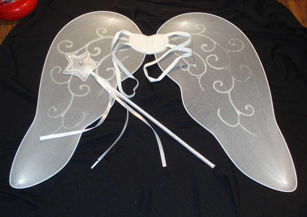 Крылья – неизменный атрибут костюма ангела, используемого для детских утренников, школьных спектаклей, новогодних маскарадов, а также фотосессий. Изготовить их можно самостоятельно, сделав проволочный каркас и обтянув его белой тканью или вырезав шаблон из картона и обклеив его бумагой.