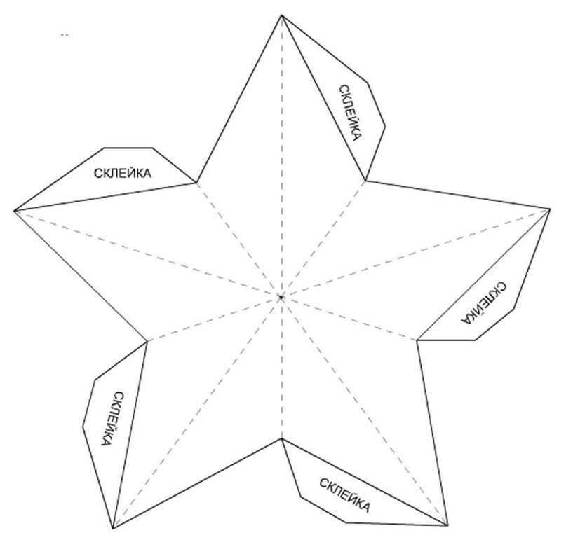 Когда вы соедините все концы, у вас получится звезда. Теперь нужно свернуть эту заготовку по пунктирным линиям.