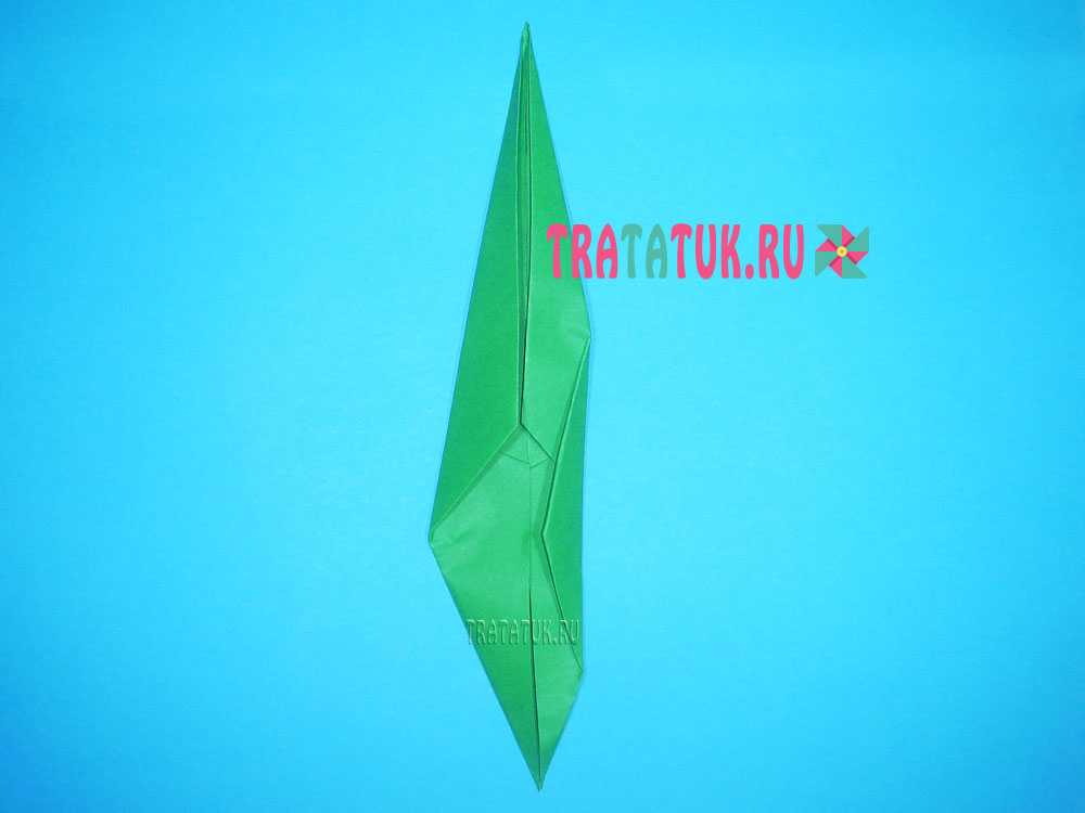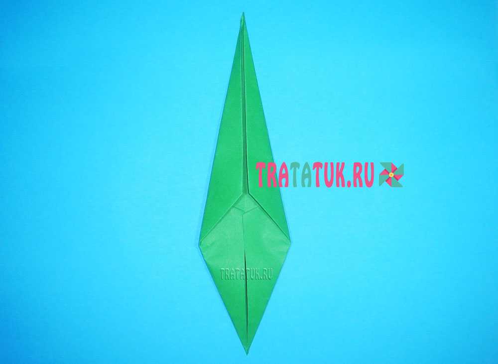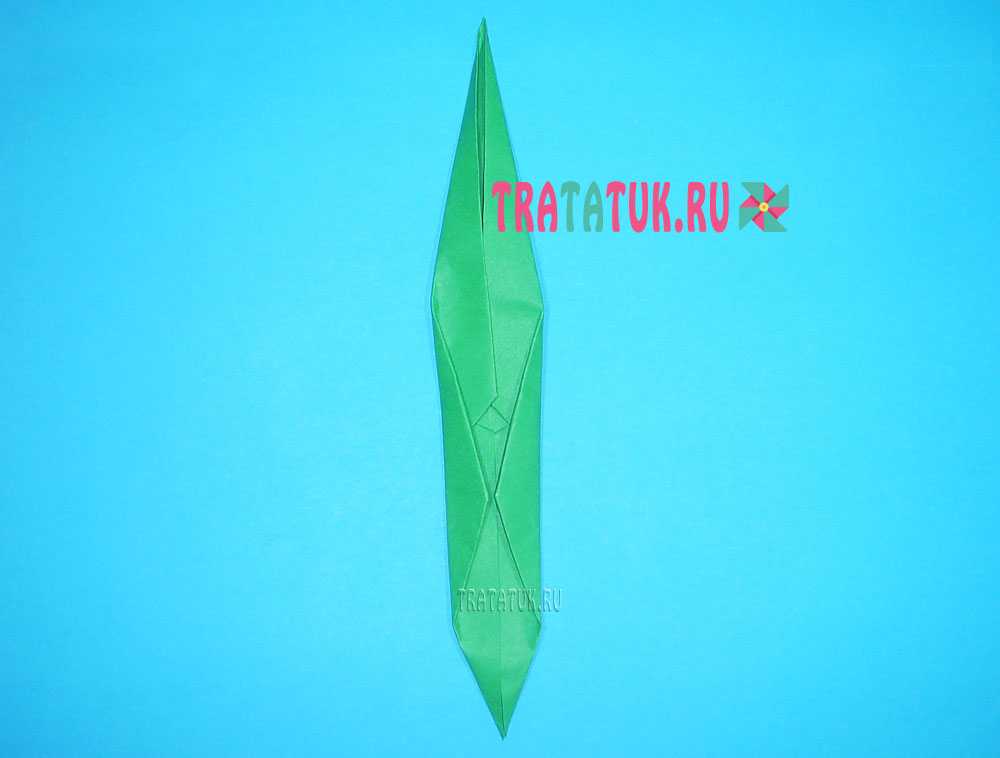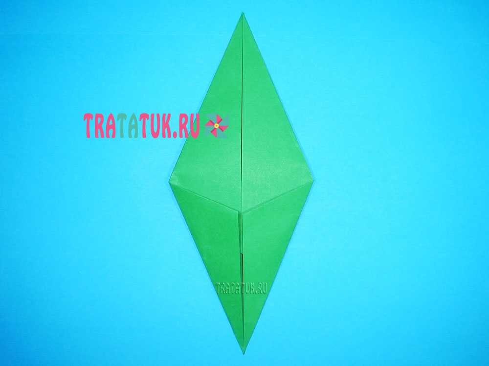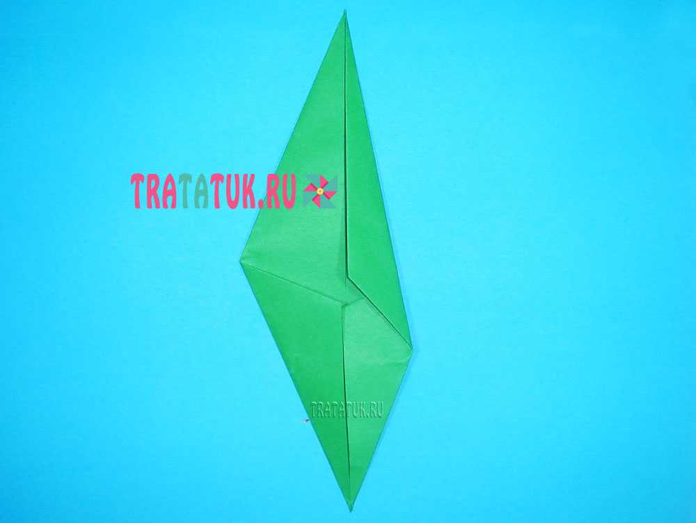 Сам модуль изготовить достаточно легко. Взять одну заготовку листика и согнуть пополам сверху вниз.