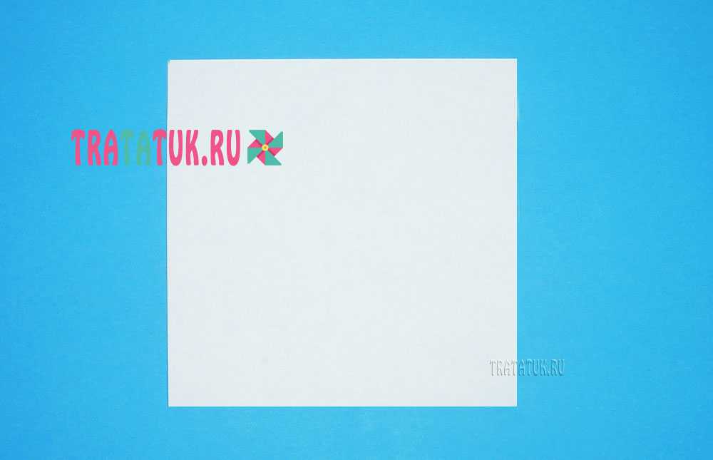 - Для этого цветка понадобится квадратный белый отрезок из бумаги.