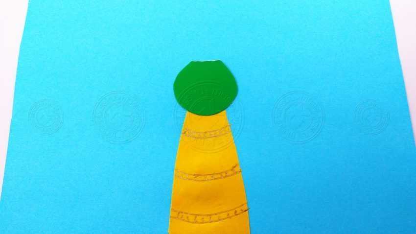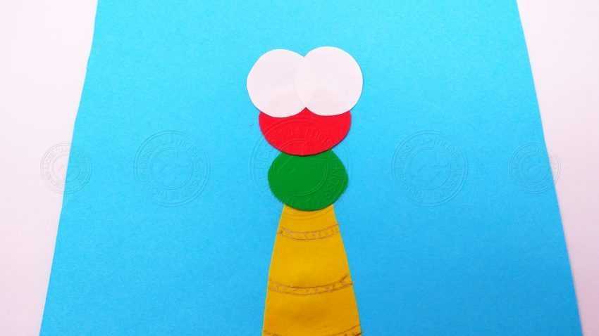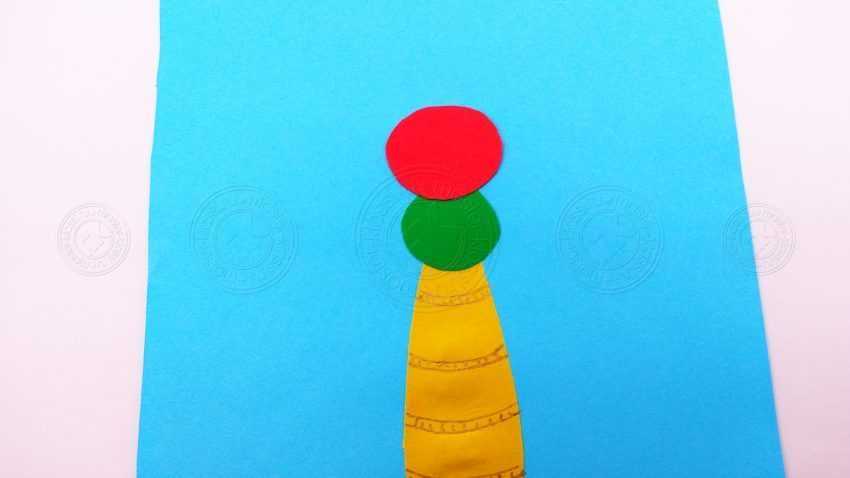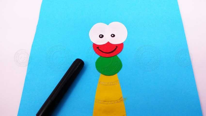 6. Возьмите кусочек любой другой бумаги, например, зеленого цвета. Вырежьте кружочек, наклейте в верхней части туловища.