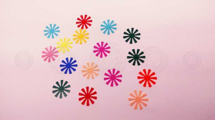 - Самый простой цветок – ромашка. Это некий символ любви и чистоты. Белая основа для лепестков и немного желтой бумаги – все, что нужно для этого изображения.