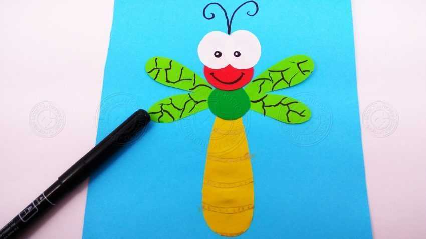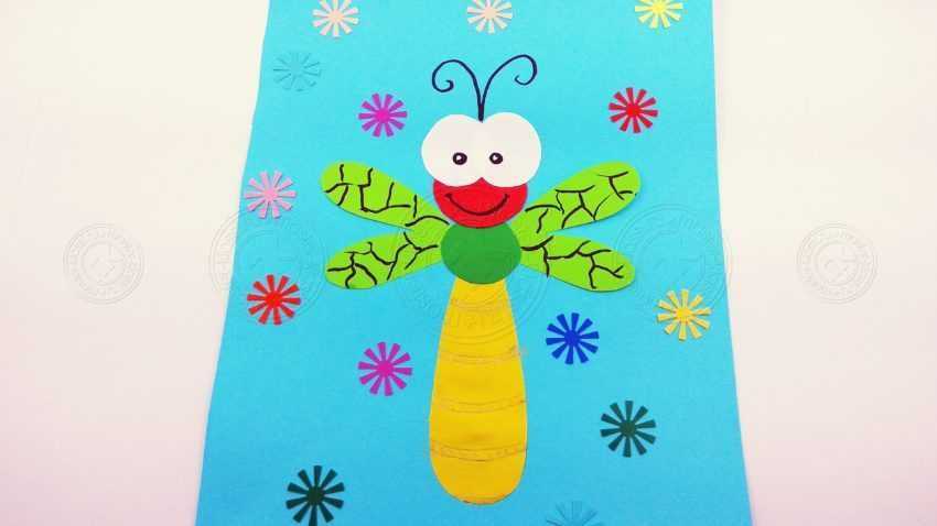 Описание, как сделать яркую аппликацию со стрекозой поэтапно