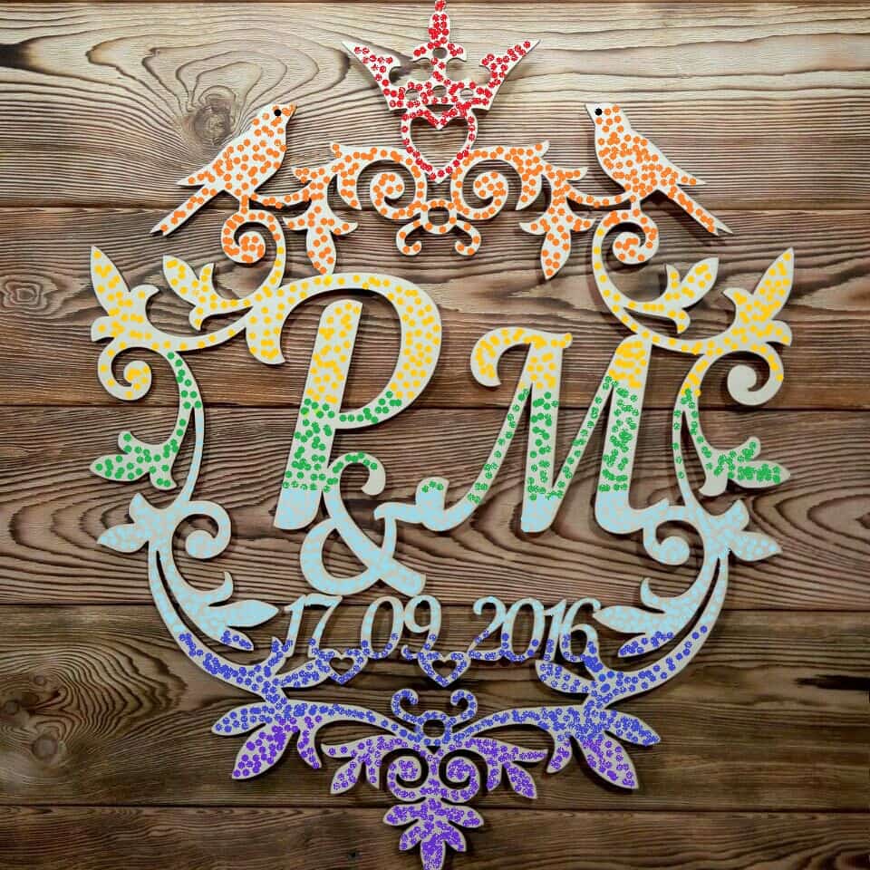 Сделав ремонт в детской комнате, в качестве завершающего штриха можно разместить на стене монограмму ребенка, украшенную радужным орнаментом из бумажных салфеток. Для этого нам потребуются следующие материалы: