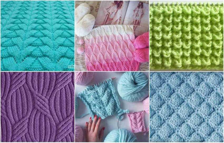 Платочная вязкаЛицевая гладьРезинкаЖаккардовый узорКосичкаАжурный узор