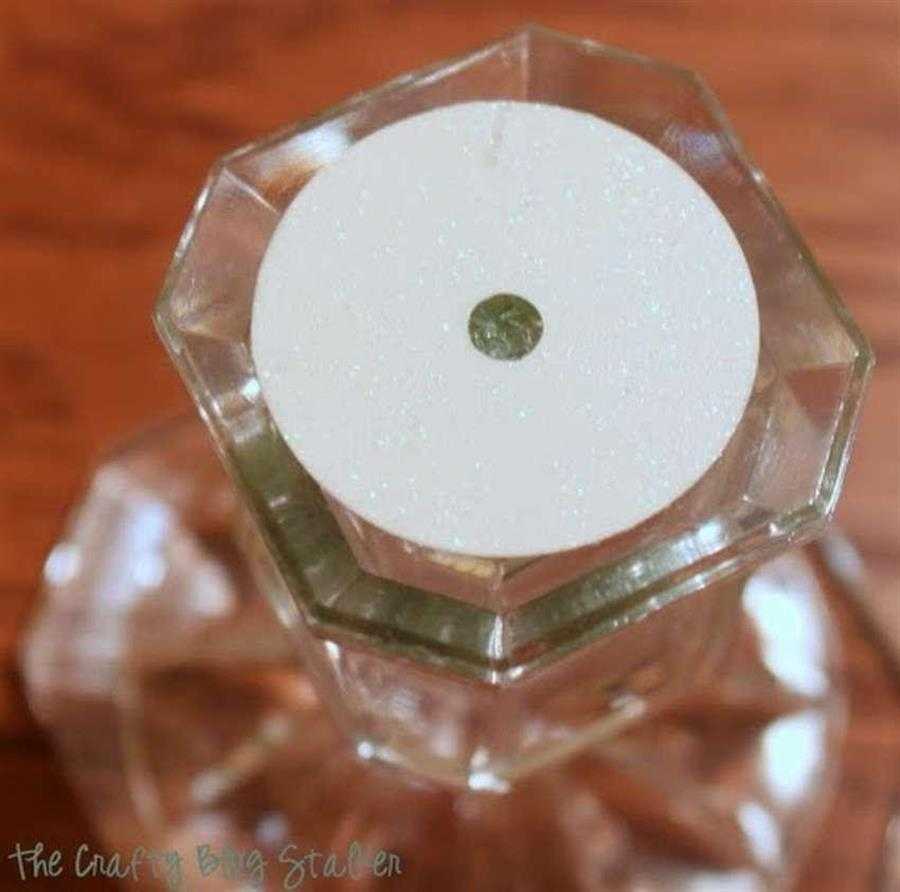 Сверху приклеиваем небольшой кружокс маленьким отверстием в центре. Именно туда мы и будем вставлять ствол дерева.