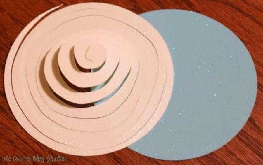 - Сделайте три полных круга, и от внешнего края вырежьте спираль, как на фото.