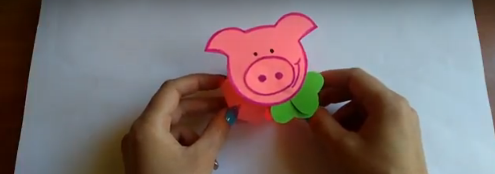Рисуем свинке пятачок и приклеиваем глазки. Мордочка свинки в технике оригами — готова!