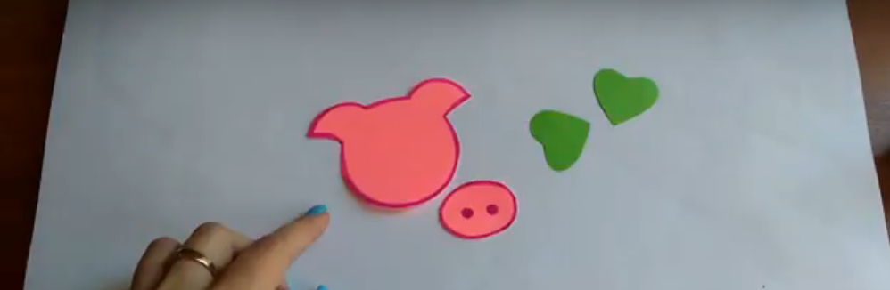 - Для пятачка и глаз делаем рисунки, затем вырезаем из бумаги.