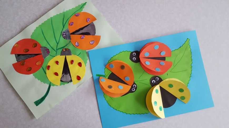 Все детки любят и знают божьих коровок, поэтому сделать такую поделку захотят все. Есть много вариантов изготовления данного насекомого – многое зависит от сложности выполнения. Самым простым типом станет божья коровка на листе с подвижными крыльями. Принцип изготовления: