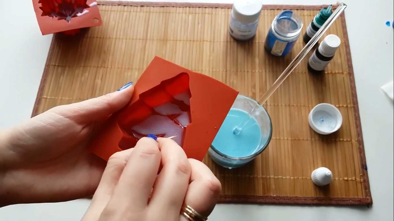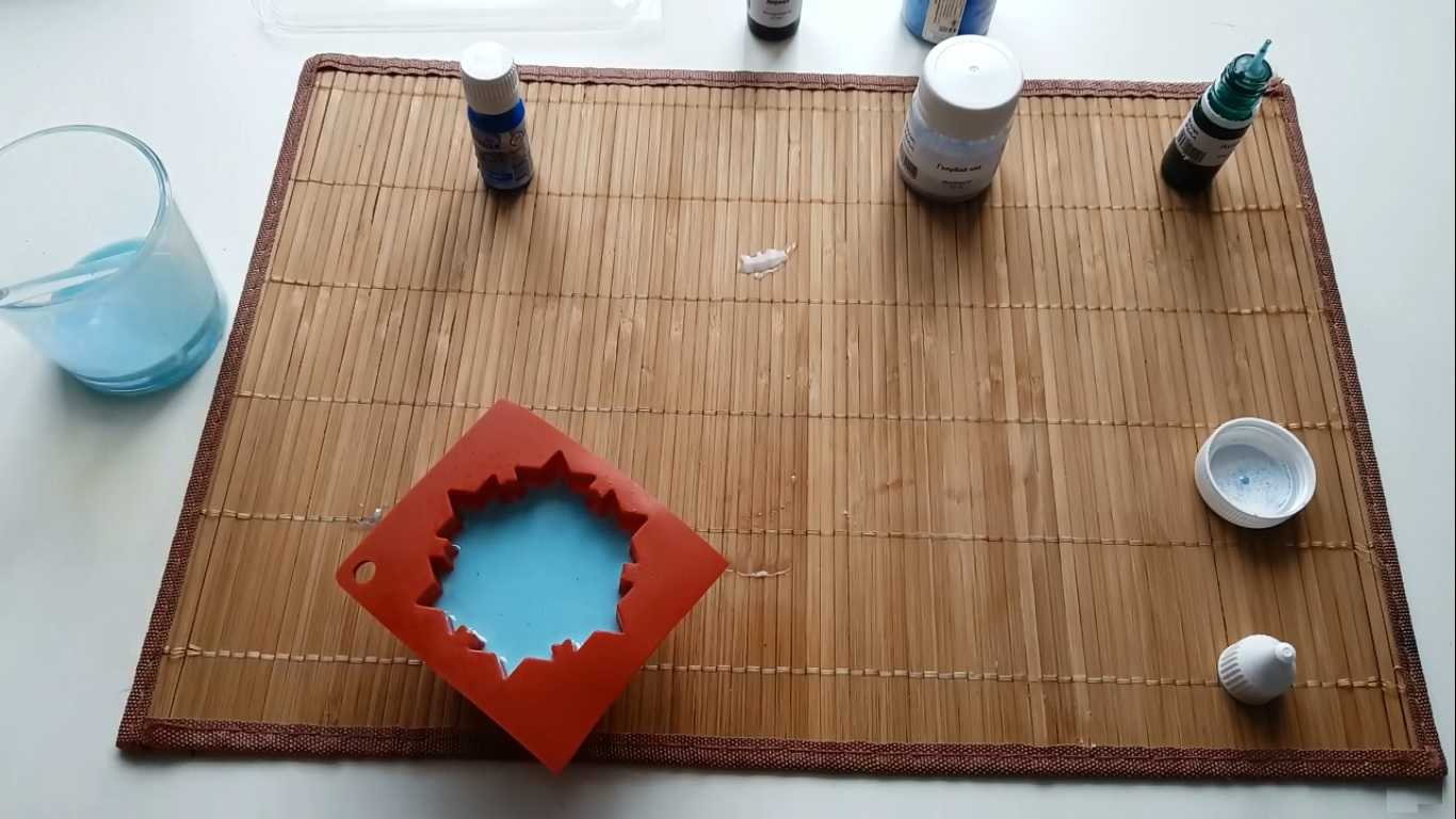 Обработать спиртом формочку и залить подготовленную основу. Немного простукать по краям формы пальцем, чтобы основа равномерно распределилась, взбрызнуть сверху спиртом и поставить застывать.