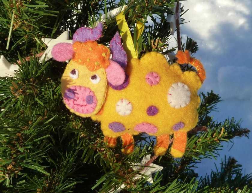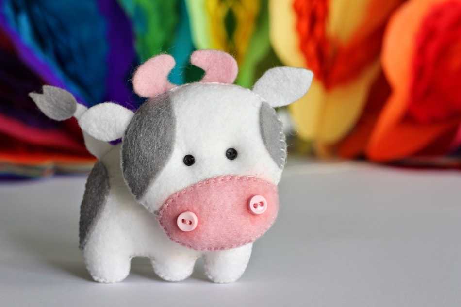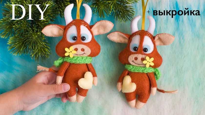Усложненная идея — создание фигурок из фетра. Это превосходный материал, который отличается простотой в работе и эстетичным видом. Праздничные поделки в форме телят будут как никогда кстати в 2021 году.