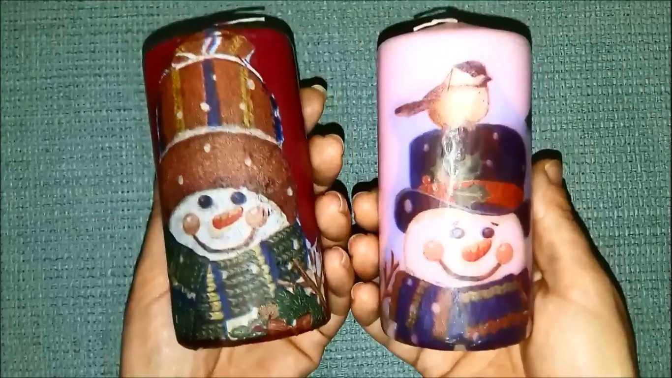Для выполнения новогодних свечей в стиле декупаж понадобятся: