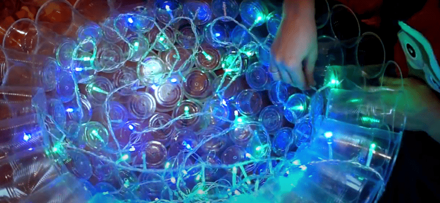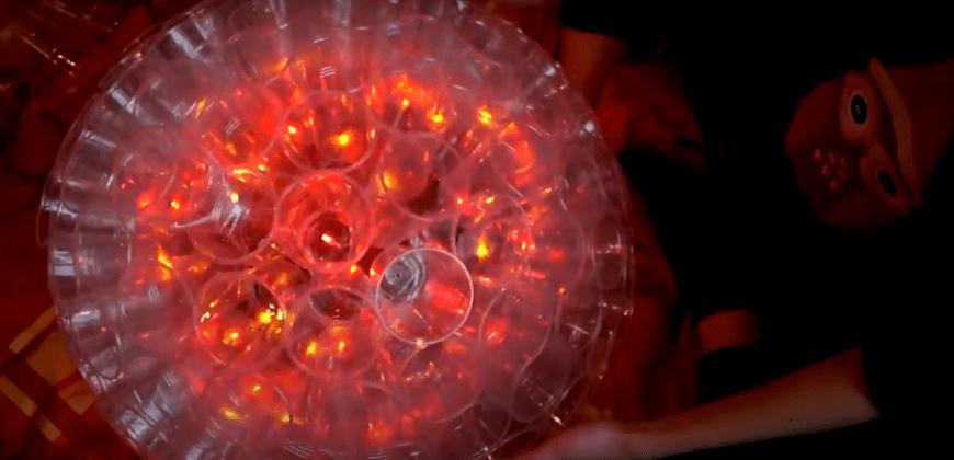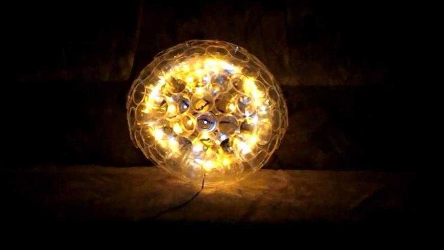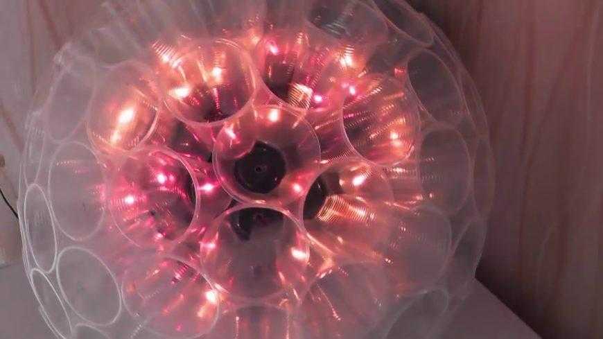 Каждая лампочка гирлянды создает в стаканчике красивый цвет, и шар светится разными огоньками, что создает романтическую обстановку в комнате.