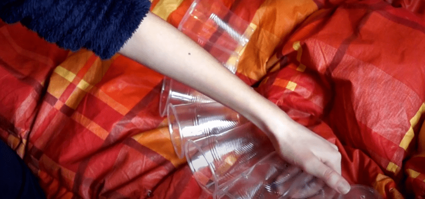 Остальные части бутылок разрезаем на кольца, их ширина должна составлять 80 миллиметров.