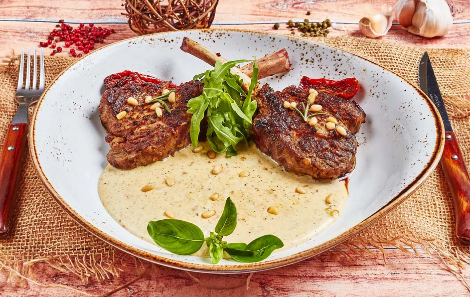 Паста из семян кедровых шишек бывает соленой, не только сладкой. В этой версии она замечательно сочетается с мясными блюдами.