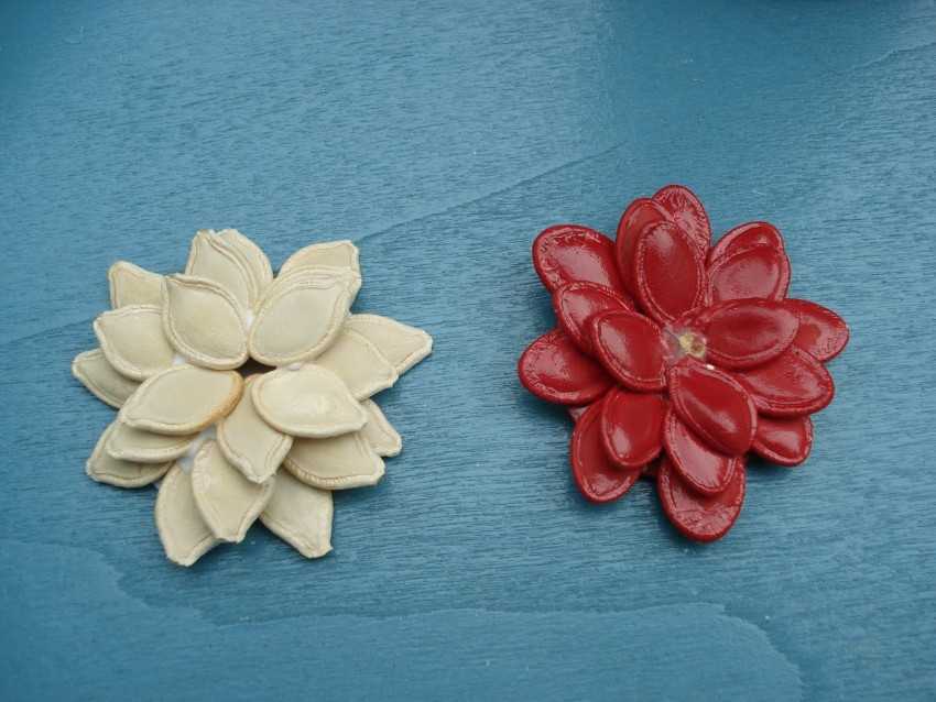 Очень красивой поделкой из тыквенных семян является букет из цветов. Выполнить ее можно своими руками на конкурс в детский сад или школу. Несомненно, данная работа привлечет немало внимания. Для ее изготовления следует запастись такими материалами: