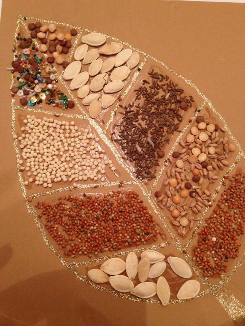 Хорошей идеей использования различных семян растений в рукоделии является поделка «Сказочной радуги». Для изготовления понадобятся различные сухие семена растений, пластилин, клей, стандартного формата лист плотной бумаги, различные крупы.