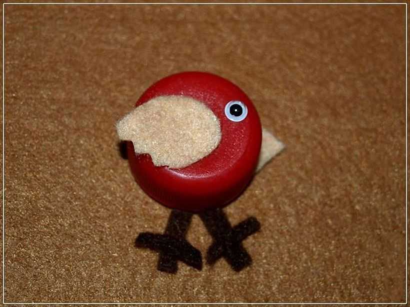 Забавные фигурки животных можно сделать из обыкновенных крышечек, оставшихся после бутылок. Для этого вам нужно подготовить крылышки и следующие материалы: