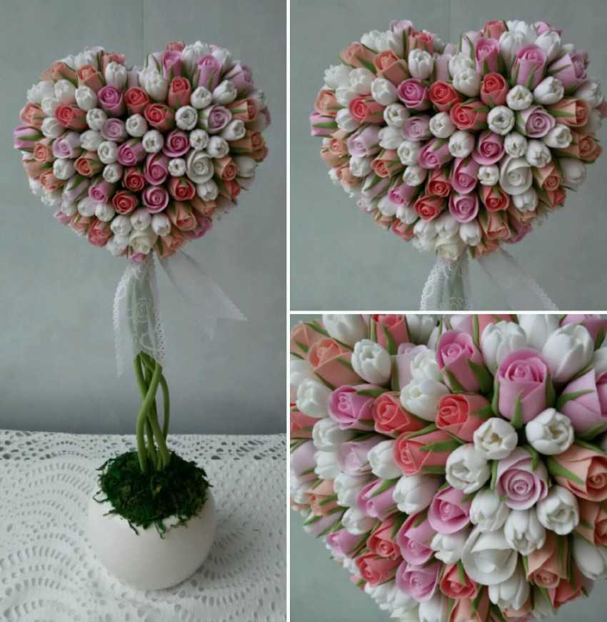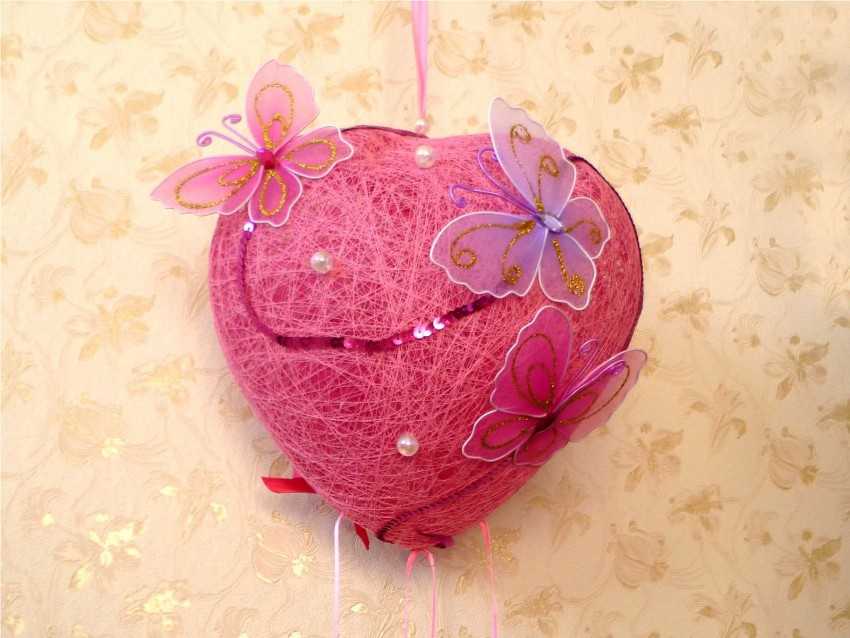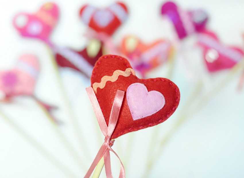 Благодаря идеям и несложным инструкциям, понять, как сделать сердечко, не составит труда. Несложная поделка выполняется на палочке. Она станет отличным украшением для интерьера, создающим праздничное настроение.