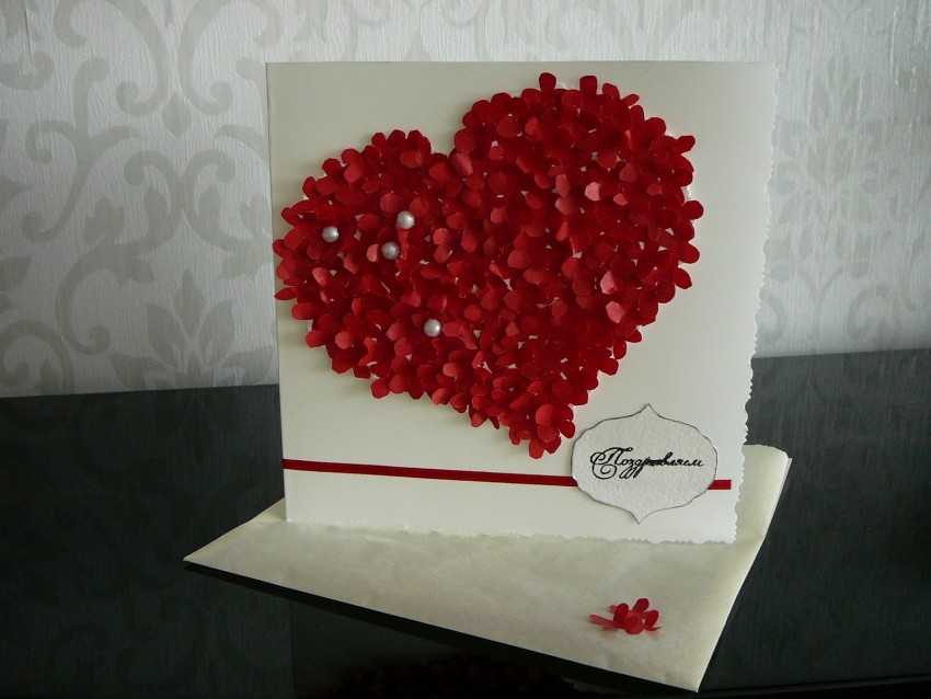 На полосе белой бумаги пишут пожелание, сворачивают в трубочку, перевязывают декоративной нитью. Из картона вырезают сердечко, наклеивают на лист белой бумаги, создают резную кромку. В центре крепят пожелание любимому человеку.
