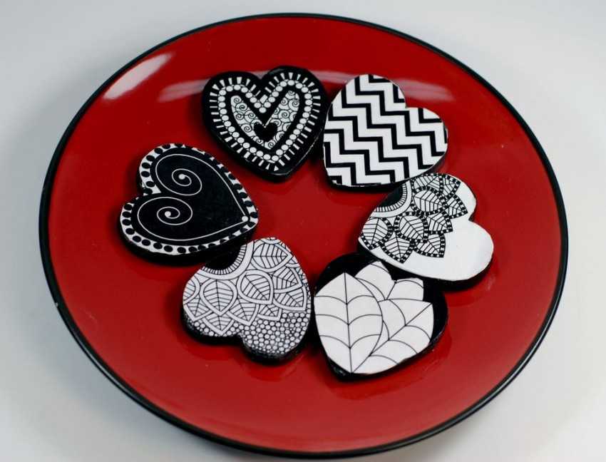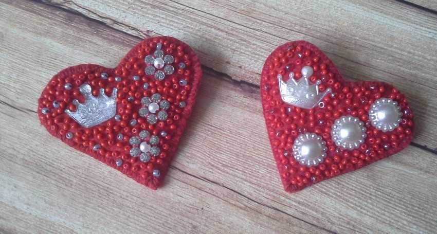 6. Когда все высохнет, можете украшать сердечки как угодно, например, использовать акриловую краску, блестки, приклеить разноцветные пуговицы, добавить красочные нитки.