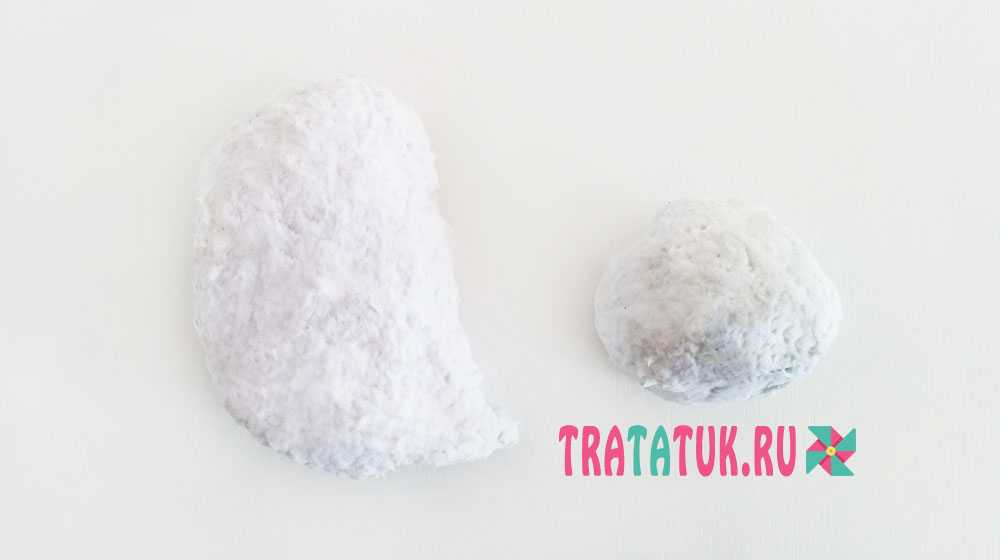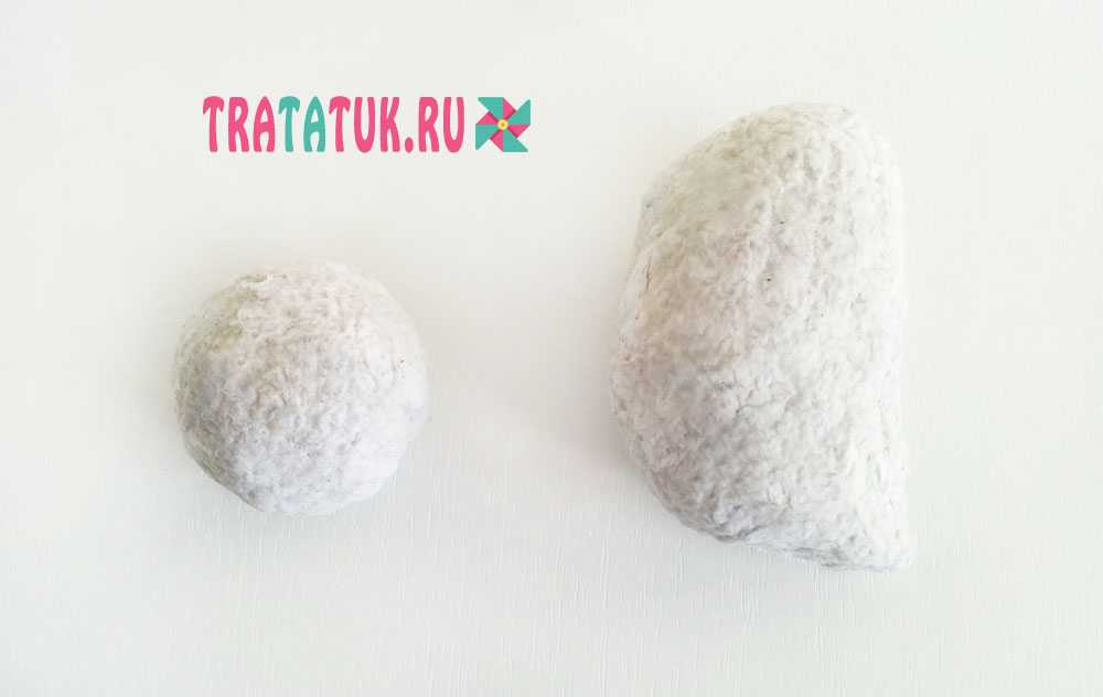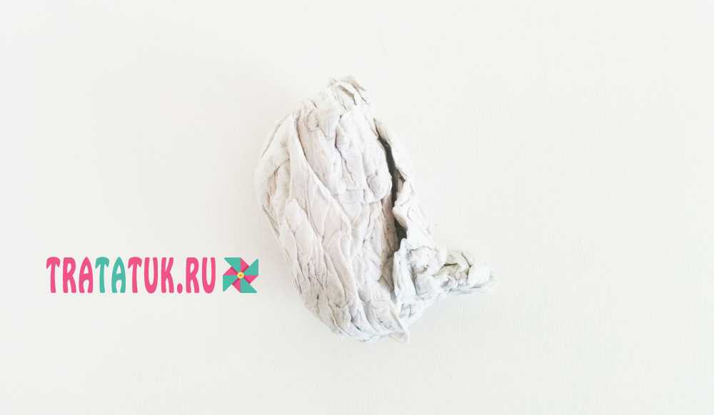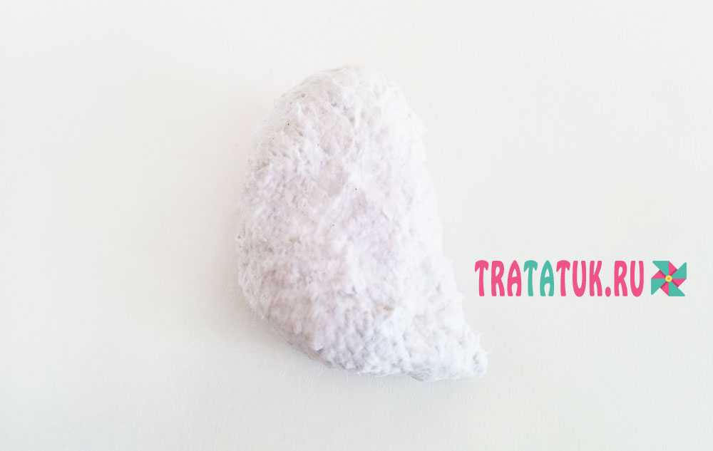 А дальше все просто – сухую туалетную бумагу нужно скомкать немного влажными руками, придавая некоторую форму, похожую на туловище птицы, то есть овал с хвостиком. Она может быть небольшая, даже не больше обычной шишки, впоследствии приклеенные шишки значительно увеличат объем.
