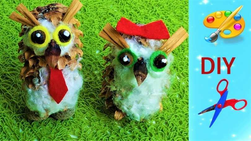 Урок по лепке совы из шишки и пластилина для детей и взрослых