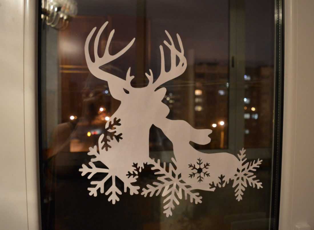 Новогодние трафареты служат удачной альтернативой росписи, тут не понадобится талант художника. С украшением окон бумажными шаблонами легко справляются все.