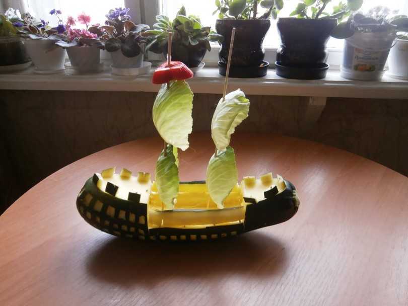 Оставайтесь с нами и посмотрите, как из кабачка и капусты сделать роскошный фрегат.