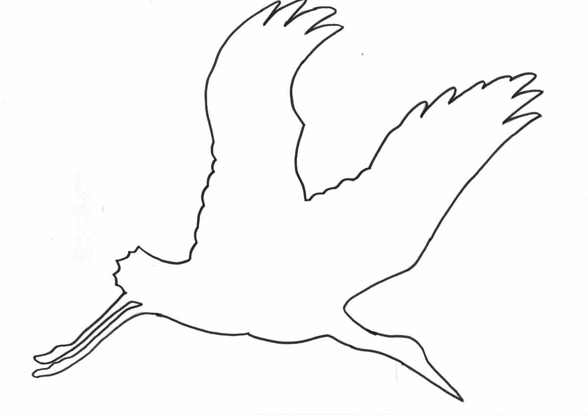 По контуру вырезаем журавлика. Раскрашиваем клюв.