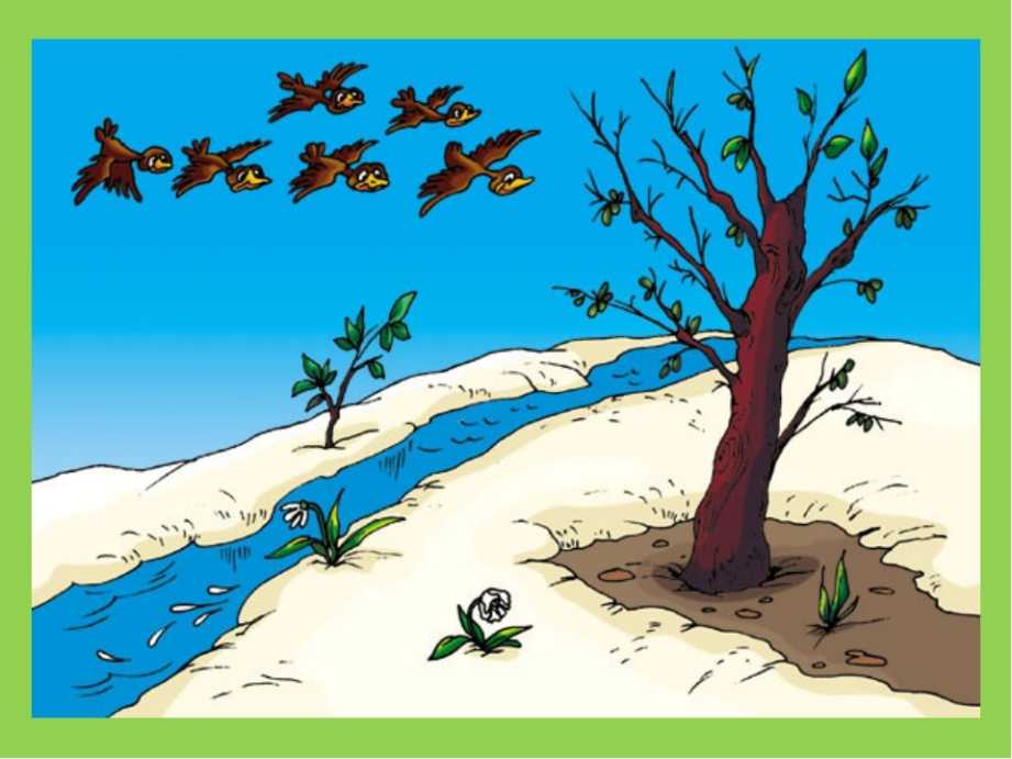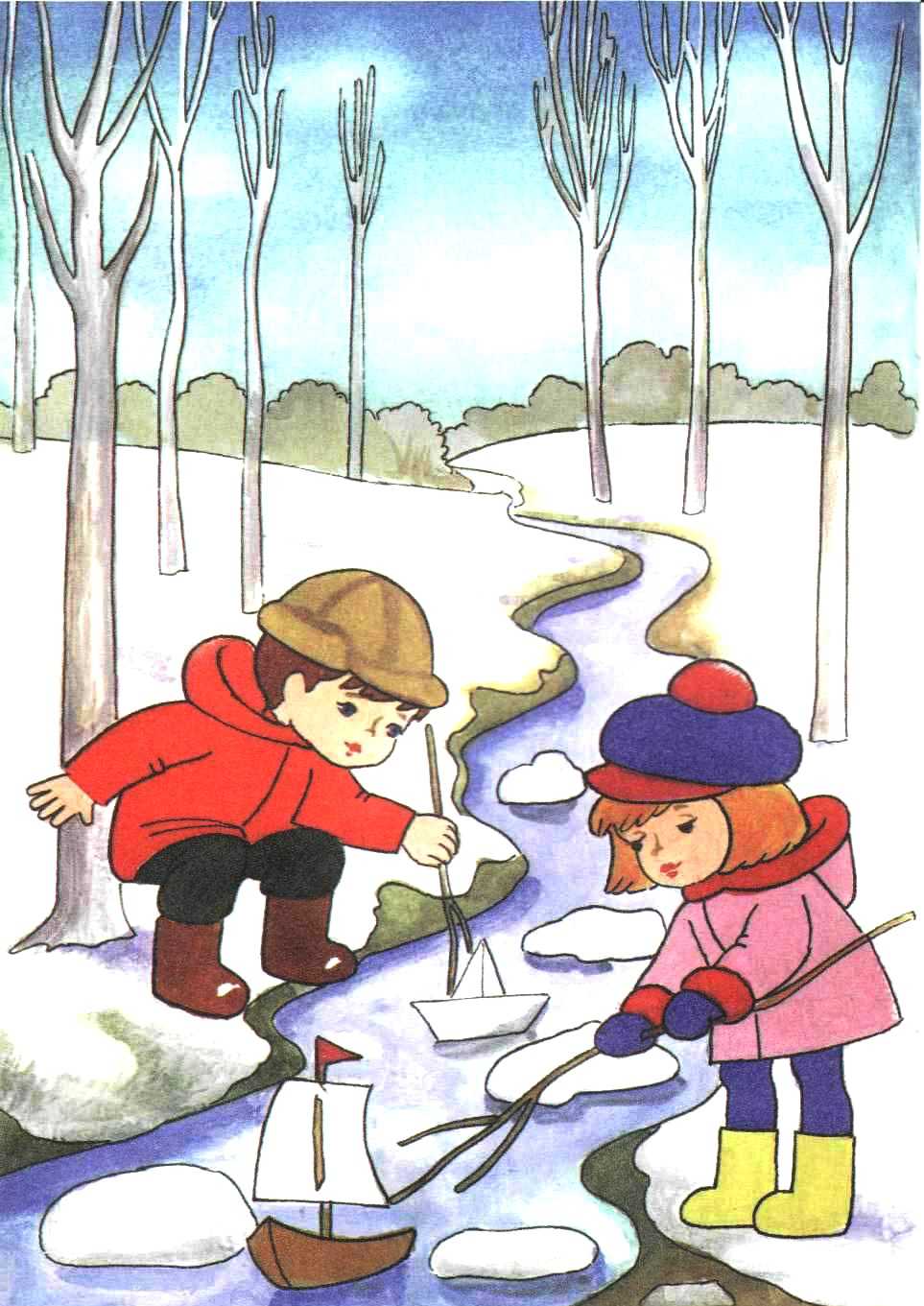 — Весной становится тепло, тает последний снег, бегут ручейки.