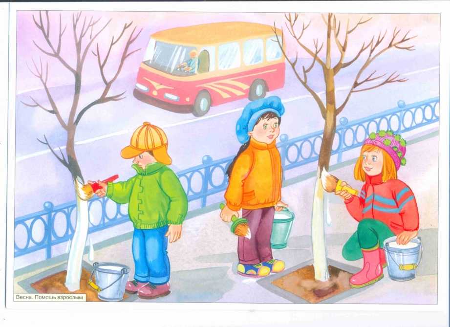 Для детей 5-7 лет нужно брать картины, показывающие постепенные сезонные изменения каждого времени года. Так мартовские логопедические занятия посвящены встрече зимы с весной, а майские — самым поздним признакам весны.