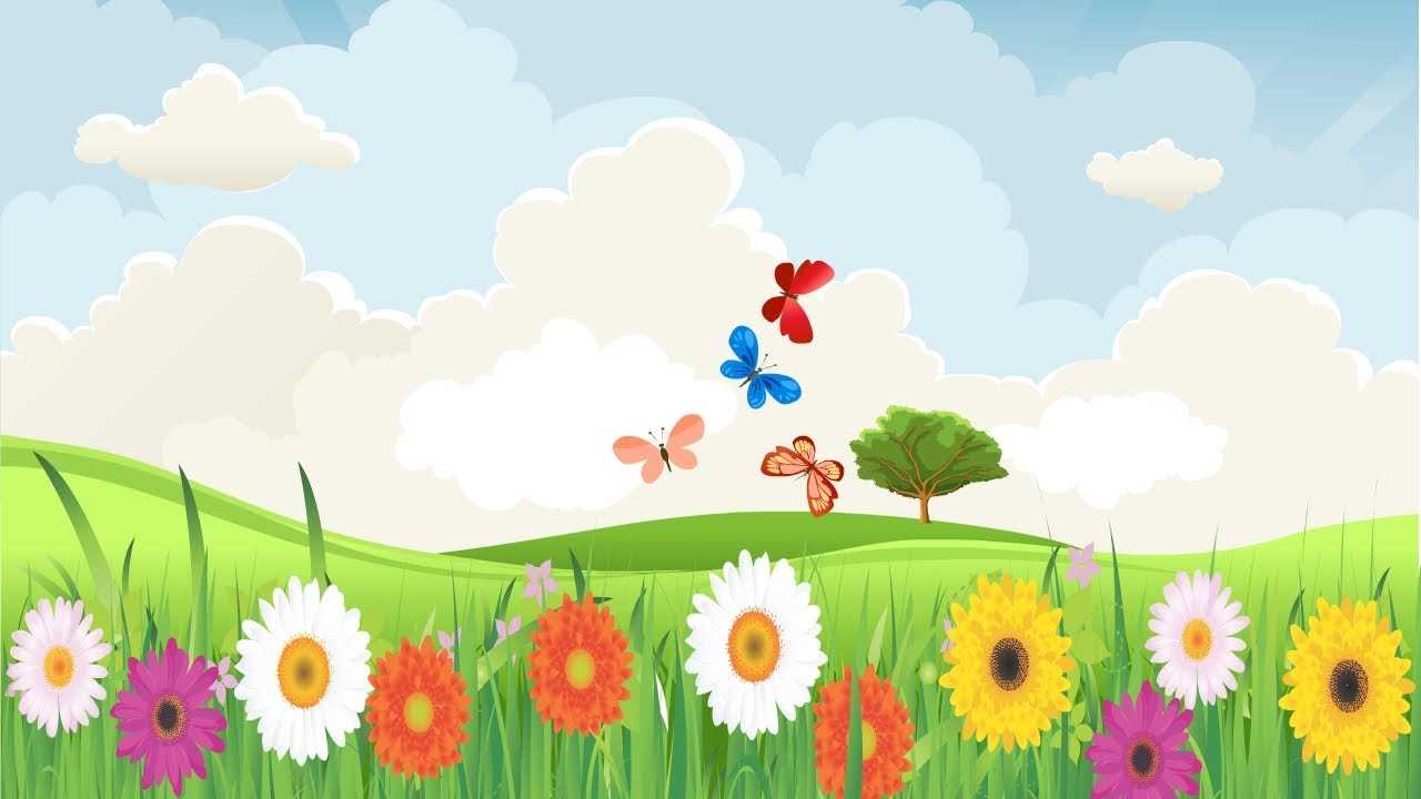 Просто красивая весенняя картинка с распустившимися цветами, лугом и небом