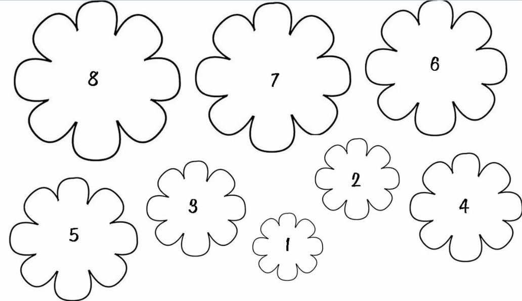 Дополнить праздничный декор детского сада можно с помощью нарядных гирлянд из цветов. Изготовить их можно из бумаги, фоамирана, глиттерного картона. Но для этого понадобятся еще и шаблоны красивых цветов.
