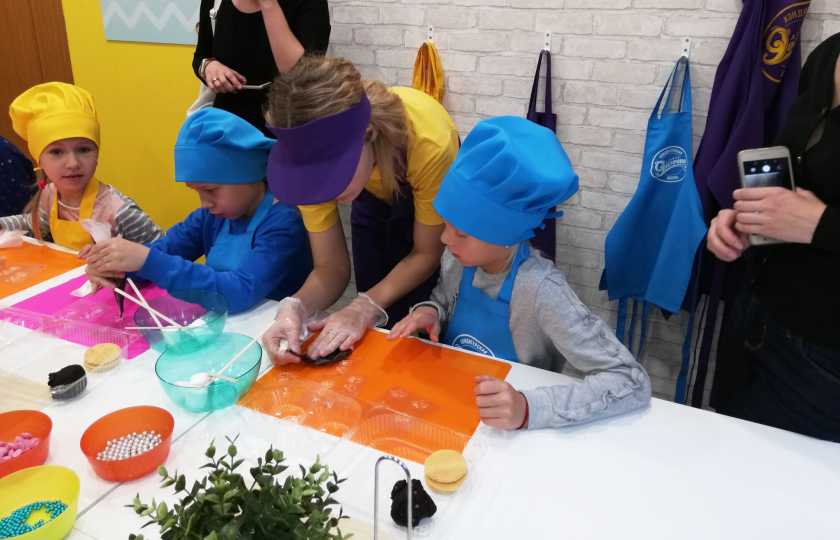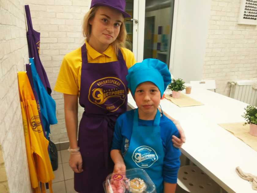 «Вошли в уютное кафе. Нас встретила доброжелательная девушка и проводила в отдельную чистую и светлую комнату, где проходил мастер-класс. Дочка вымыла руки, надела фартук и колпак (потом сняла, так как было жарко). В рядом расположенном помещении можно купить сладости и насладиться с кофе или чаем, пока ребенок занят делом.»