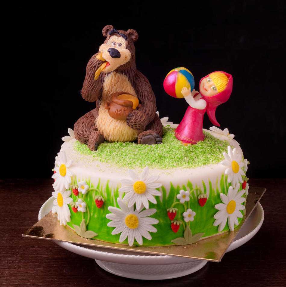 Торт 2 «Маша и Медведь» — это любимый мультфильм всех детей возрастом до 5-7 лет. Поэтому, если у вашего сынишки или дочурки приближается День рождения, испеките торт с изображением любимых героев.