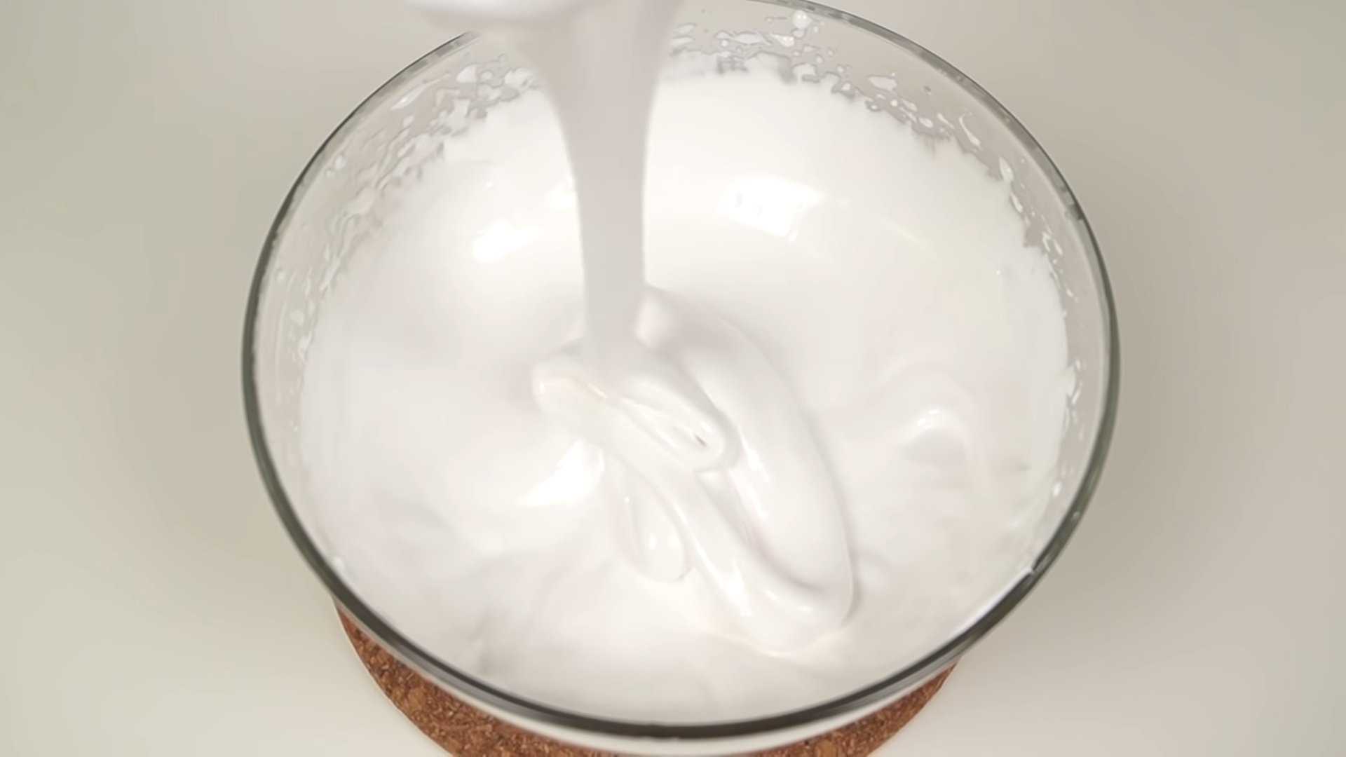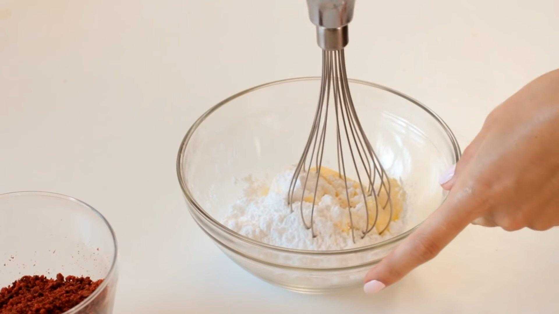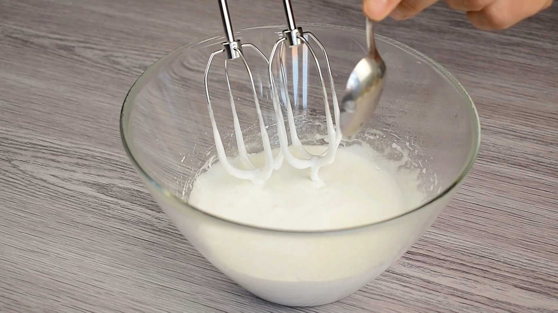 - Тщательно взбиваем все ингредиенты венчиком до пышной белой массы.