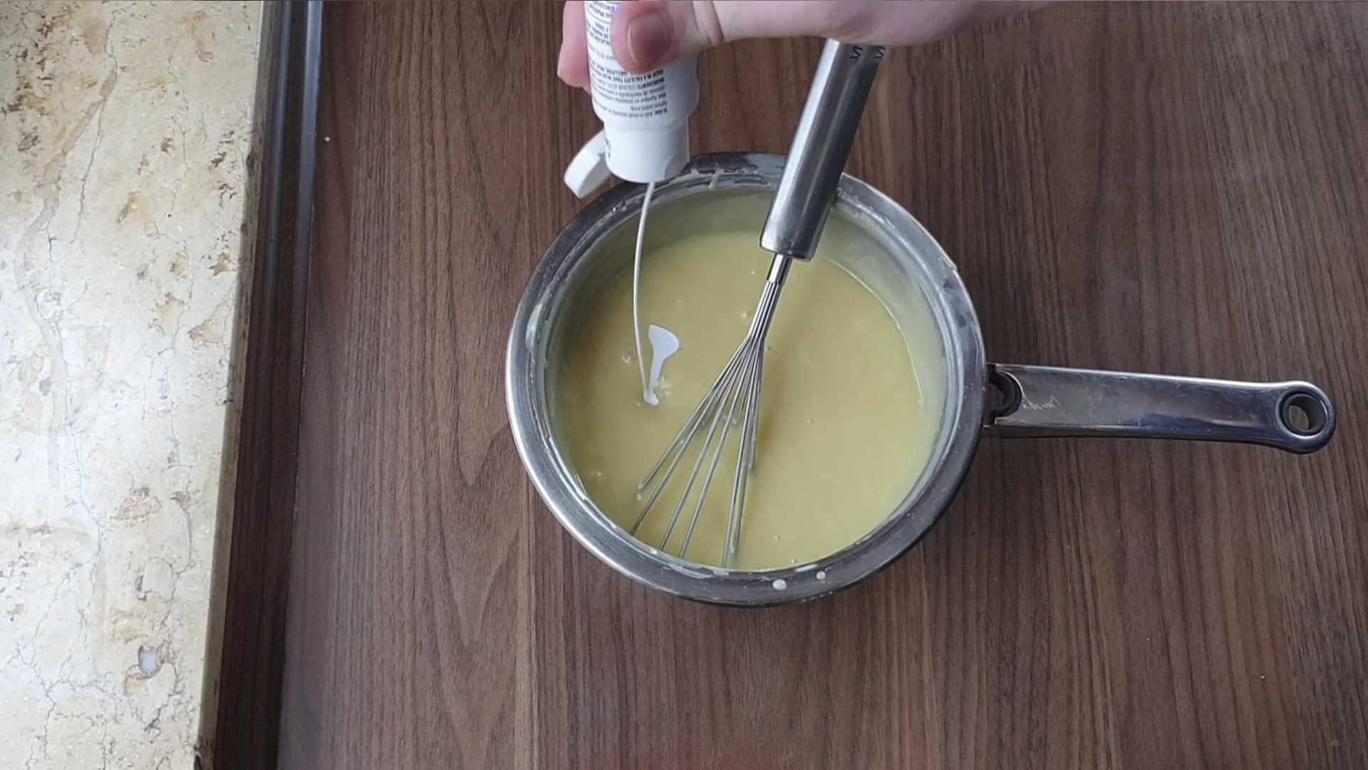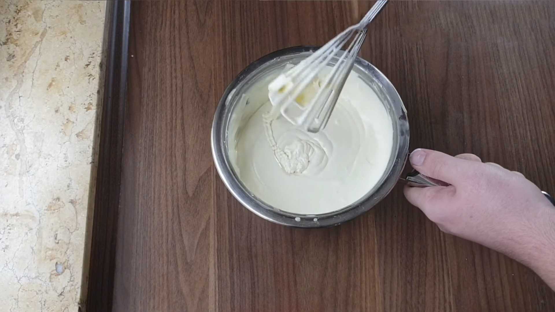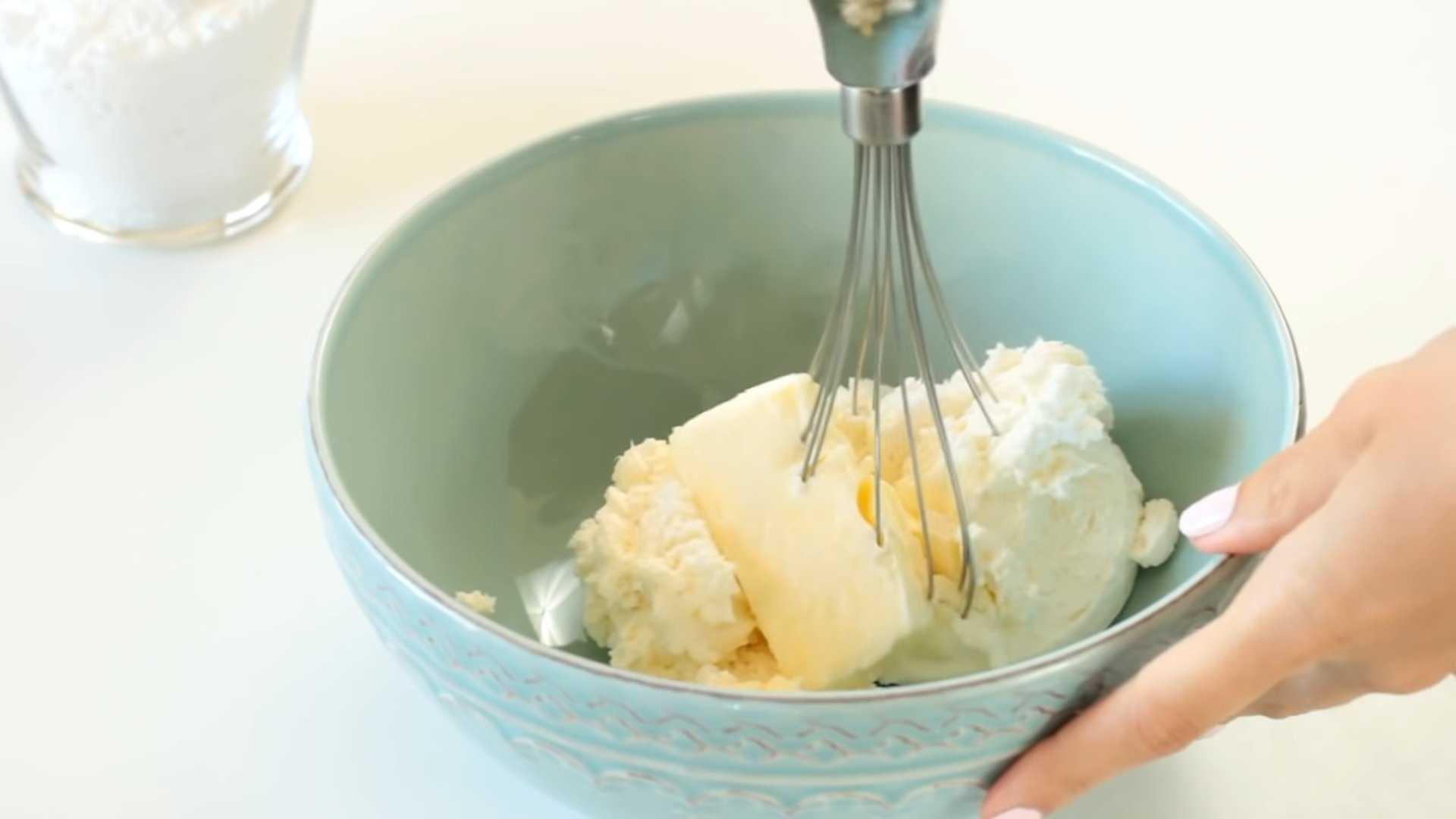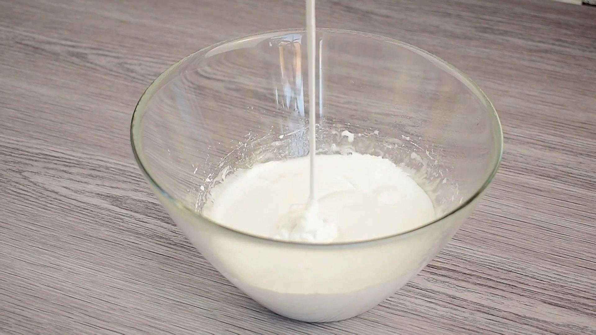 - Тщательно взбиваем все ингредиенты венчиком до пышной белой массы.