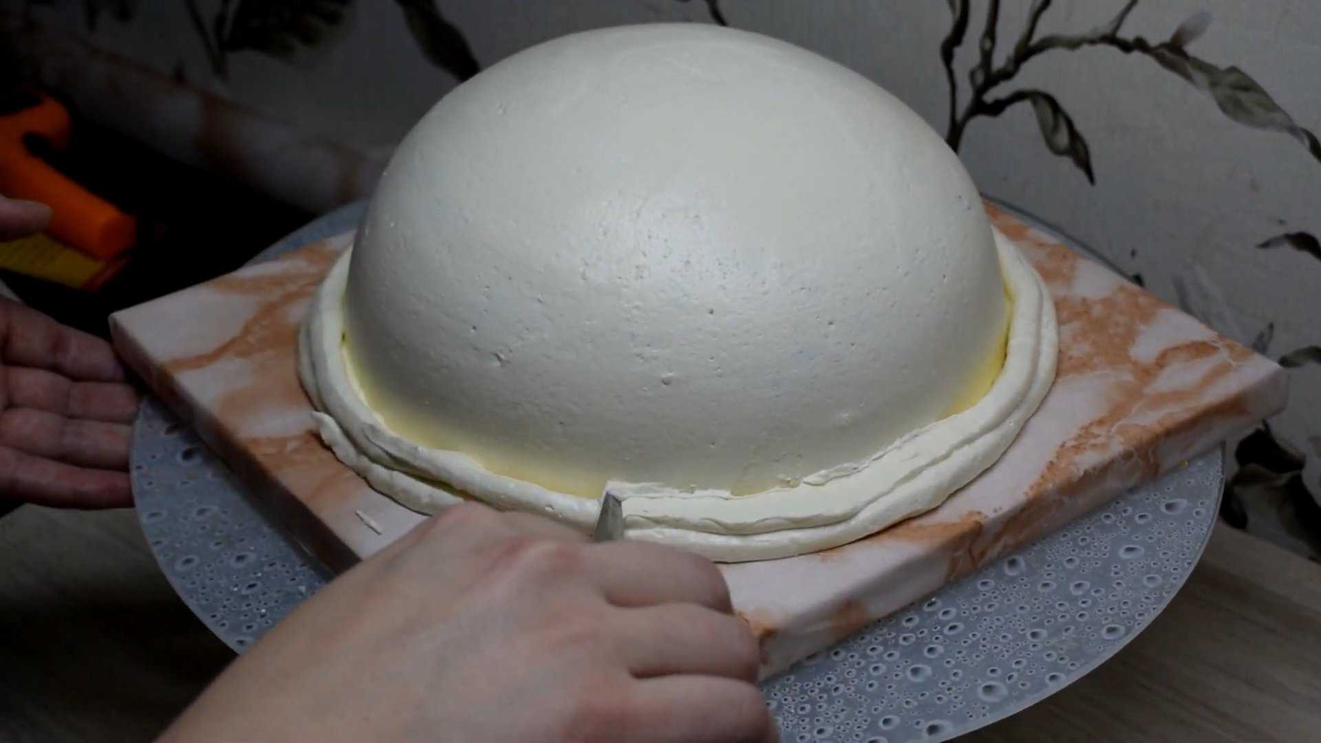 Собираем торт, его верхушке придаем форму полусферы.