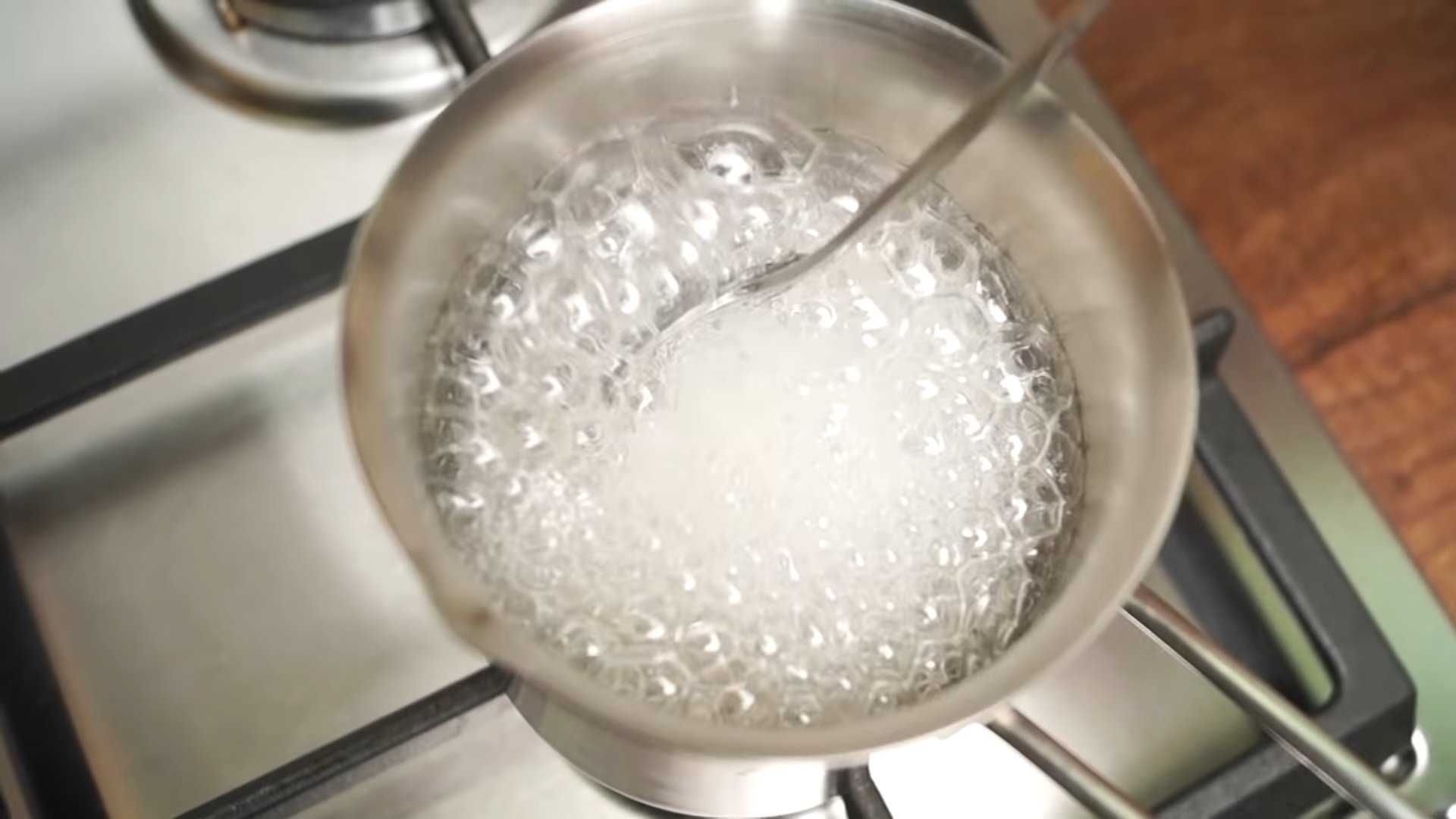 Ставим сотейник на медленный огонь и варим сироп, периодически помешивая, до закипания.