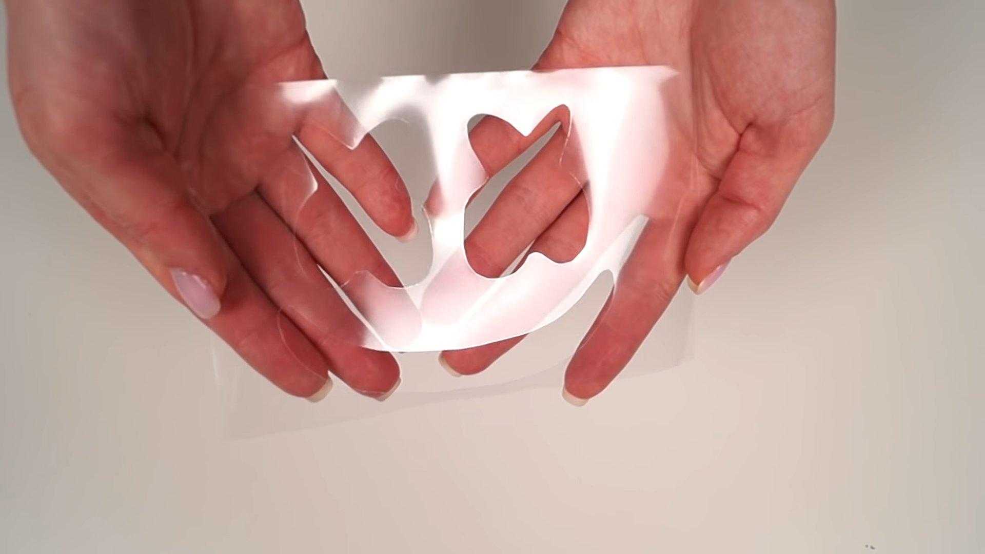 Делаем трафарет из ацетатной пленки. Вырезаем в ней глаза и рот.