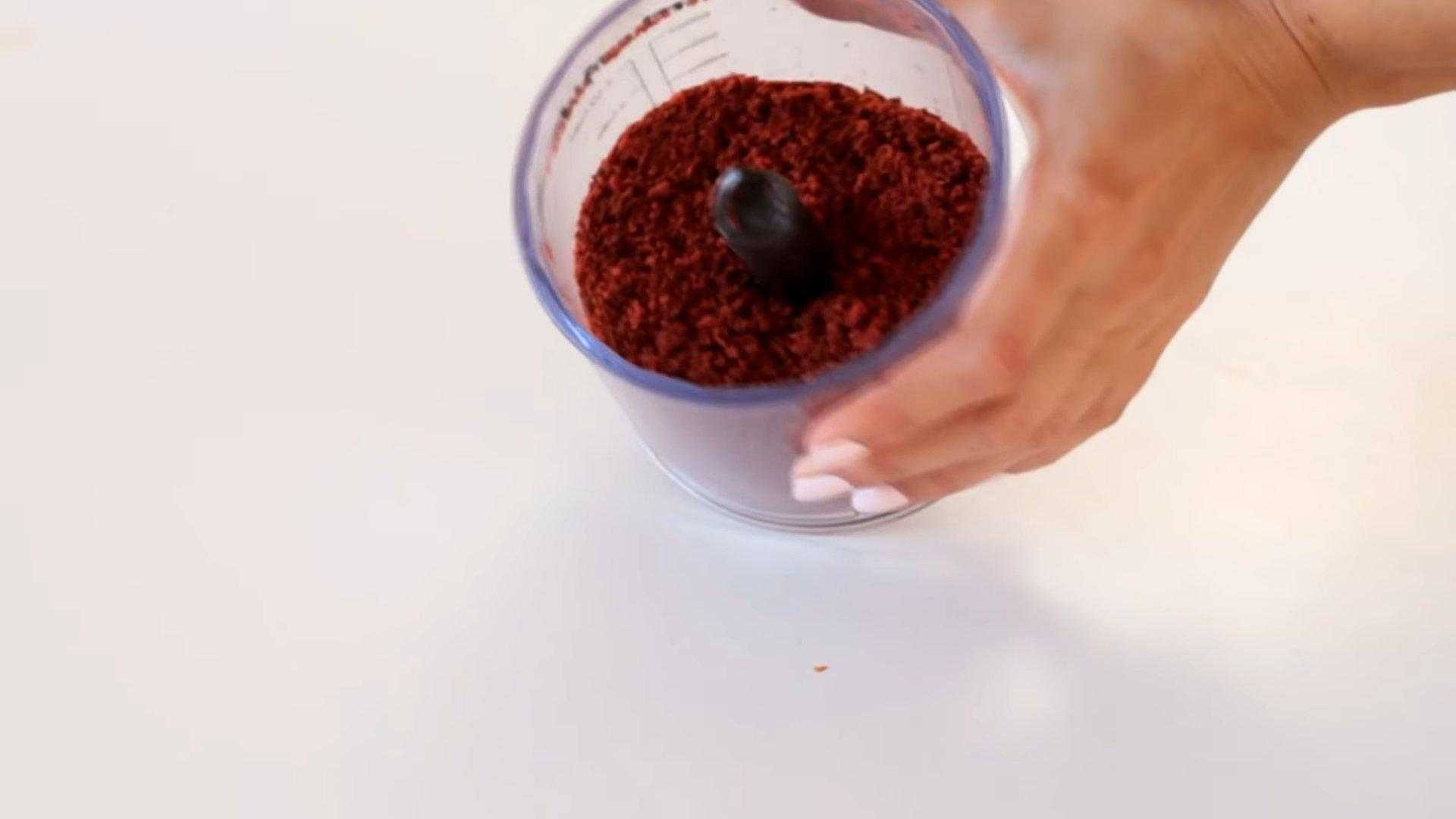 Обрезки бисквита измельчаем в блендере.