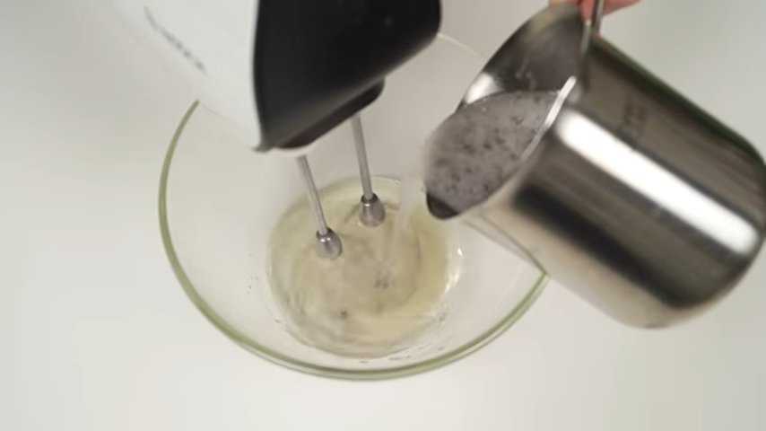Важно увеличивать скорость взбивания по мере прошествия времени. Приблизительное время сбивания – около 13-15 минут.
