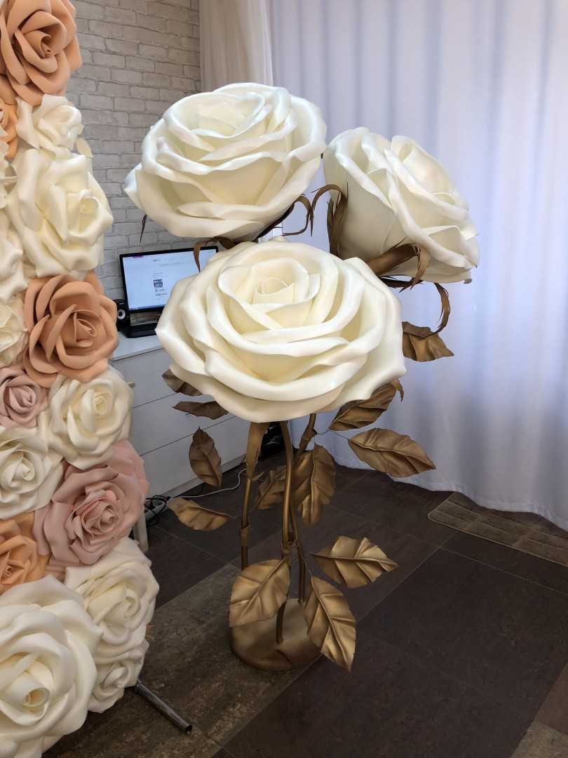Ростовые цветы из фоамирана делаются таким самым способом как и любые другие. Единственное, что их отличает от других подобных поделок — это размер бутона. Он у ростовых цветов достаточно большой. Потому при создании заготовок под лепестки, обязательно заранее продумайте их размер, и при распечатывании шаблона сразу укажите нужный масштаб. Также не забудьте заранее продумать, на чем вы будете крепить такого размера бутон. В данном случае не получится использовать коктейльные трубочки, декоративную проволоку. В идеале вам лучше потратиться на гибкую трубочку с тонким диаметром.