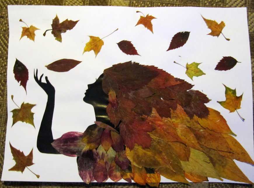 Девушка-осень – это рыжая красавица, которая огненными волосами касается земли. Не поленитесь проклеить весь водопад волос желтыми листочками, и вы сразу оцените результат.