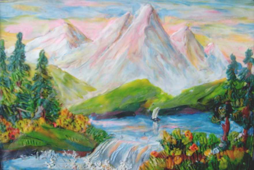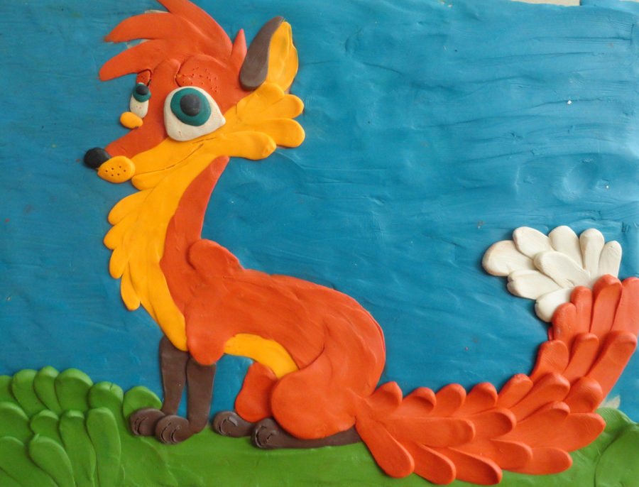 5. Основная часть работы выполнена. Фон можно выполнить также из пластилина с помощью техники размазывания. В данном варианте предложим просто воспользоваться акварельными красками или гуашью.